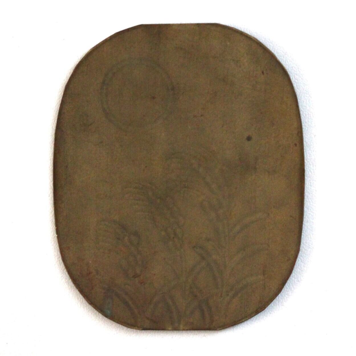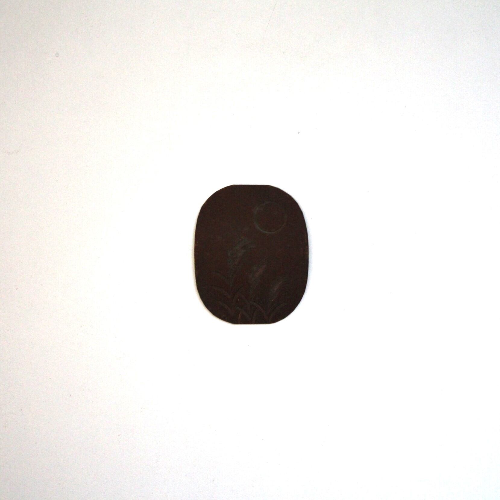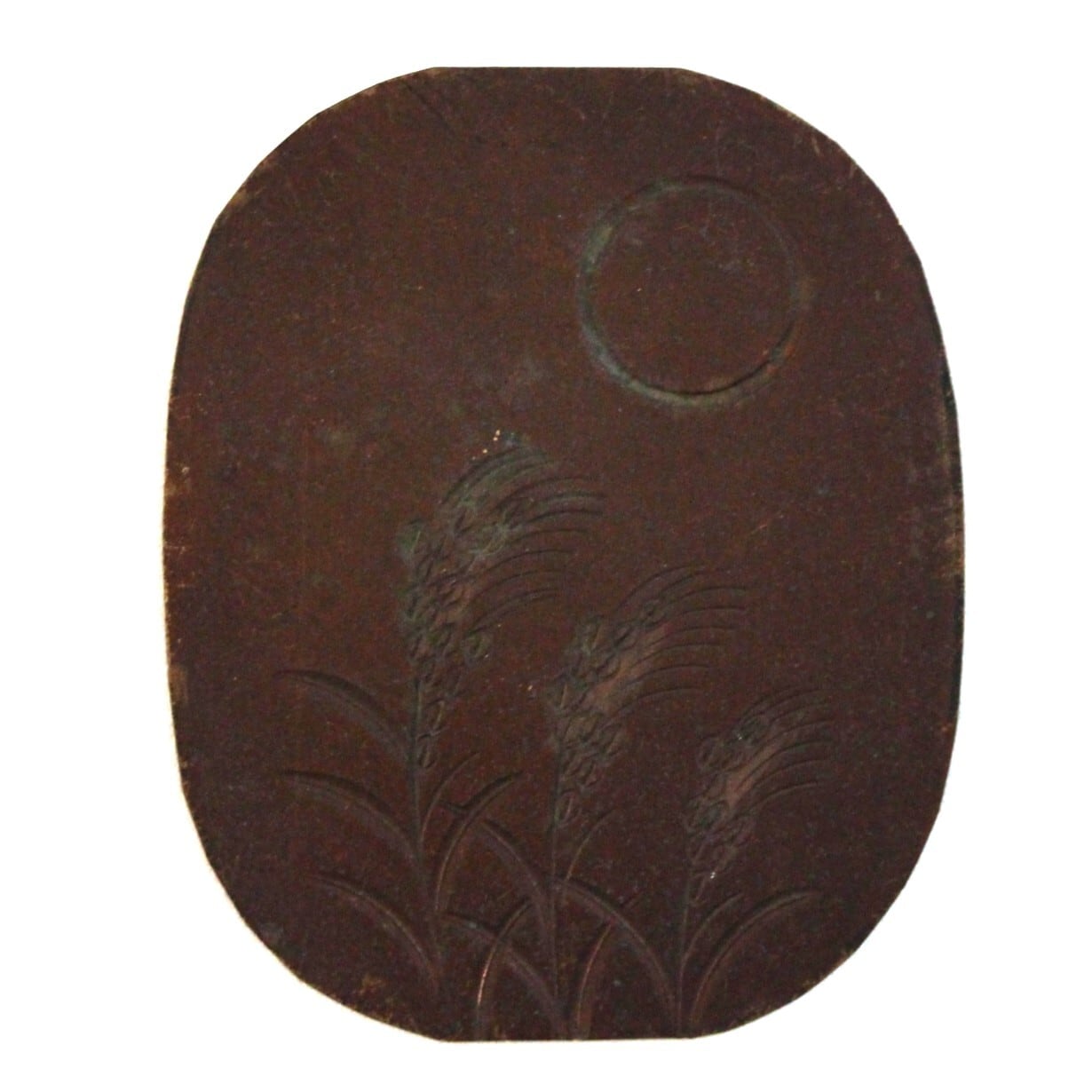A charming oval metal plate with carved design of Moon and susuki grasses. Originally it is a part of a hikite door pull.