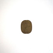 縦長の長方形の四隅を丸く切り落とし楕円に近い形状、おそらくは引き手金具の底部だったものでしょう。