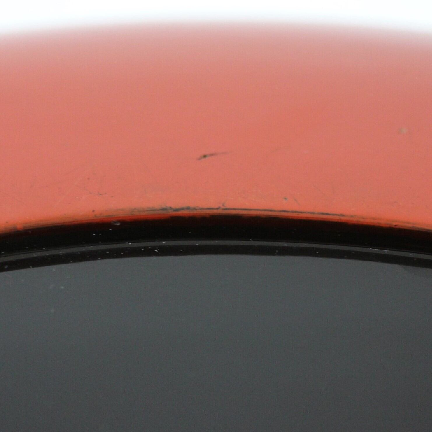 シンプルな丸盆で、黒漆の上から朱漆が塗り重ねられています。