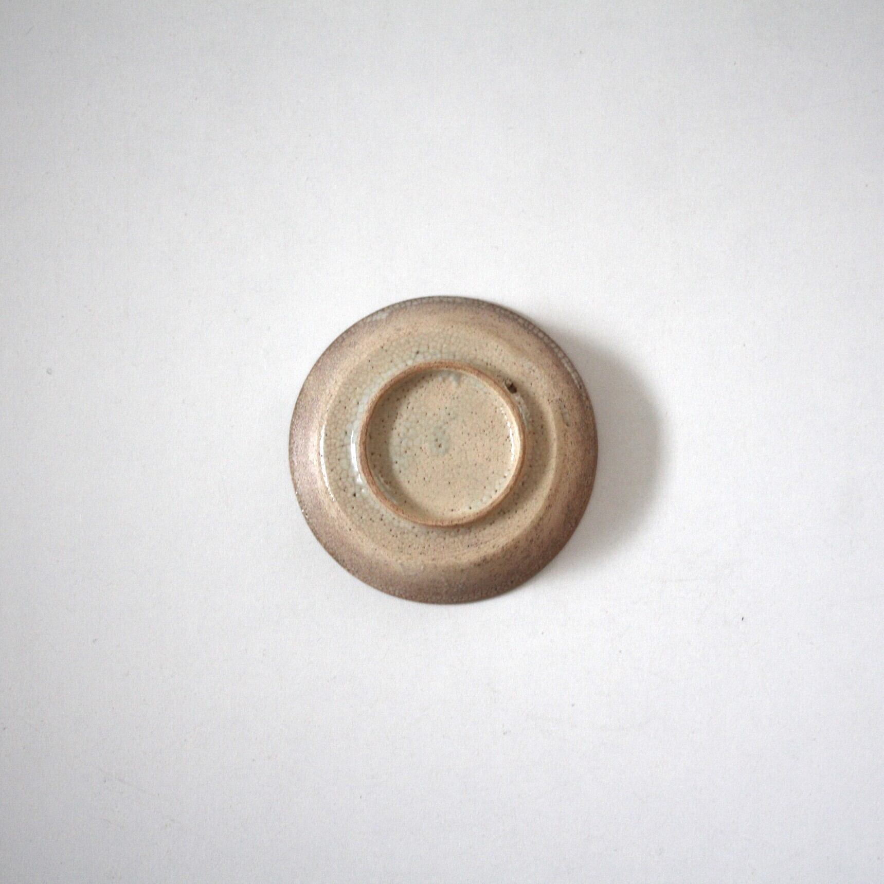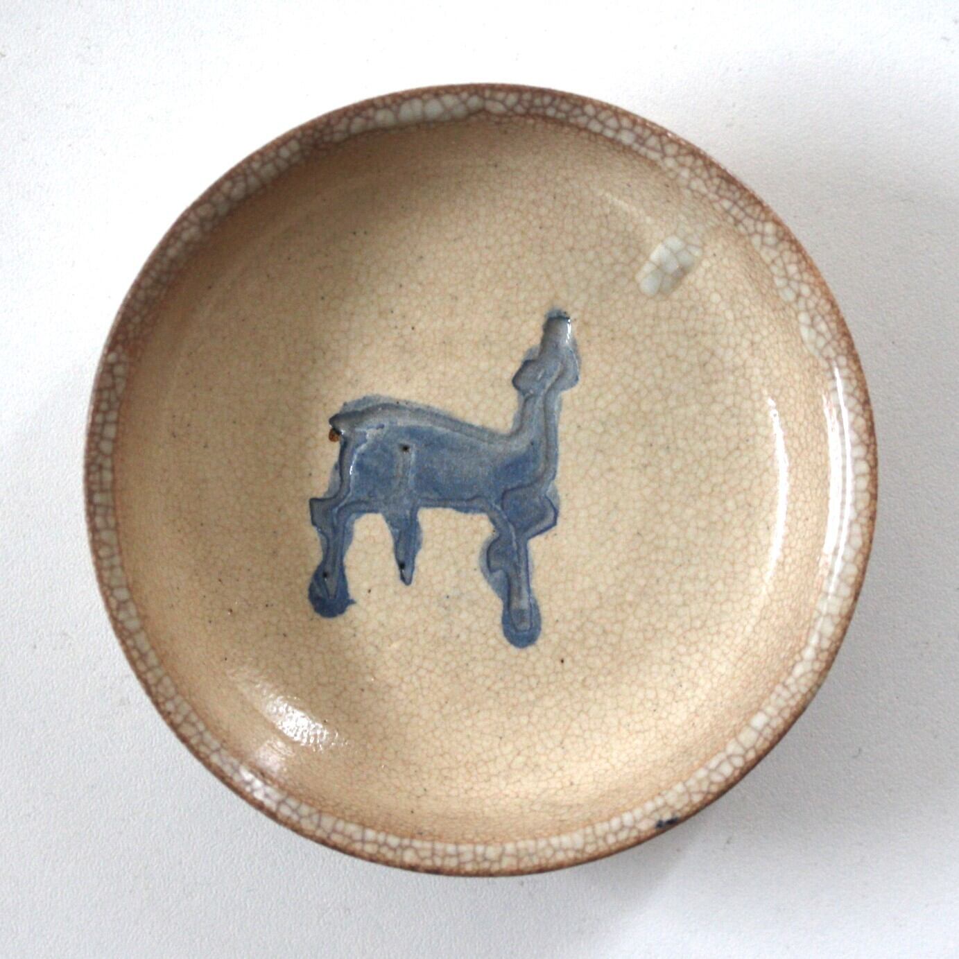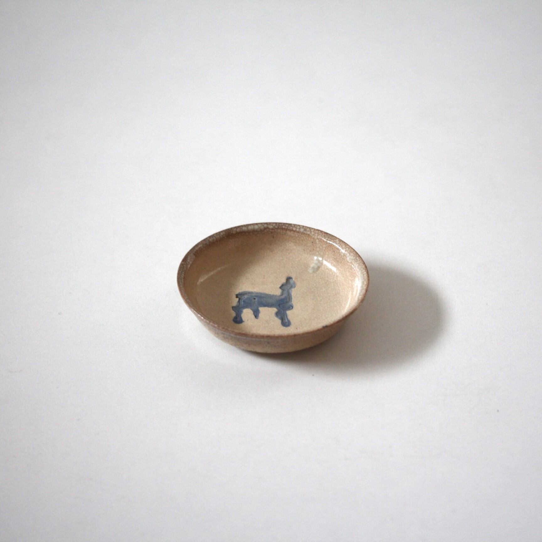 見込に鹿が型押しされた、陶胎の小さなうつわ。