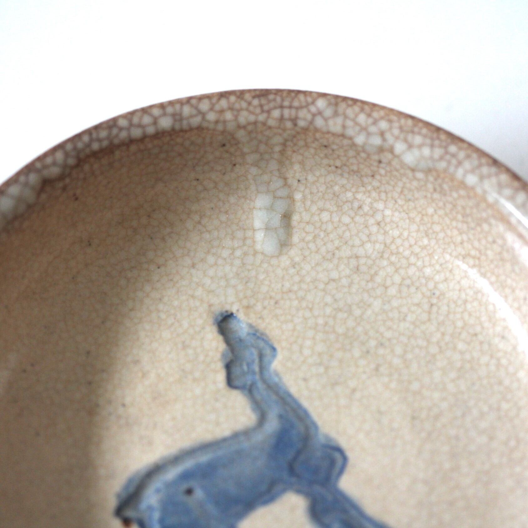 呉須で塗りつぶされた鹿には、角が見られないので牝鹿なのかもしれません。