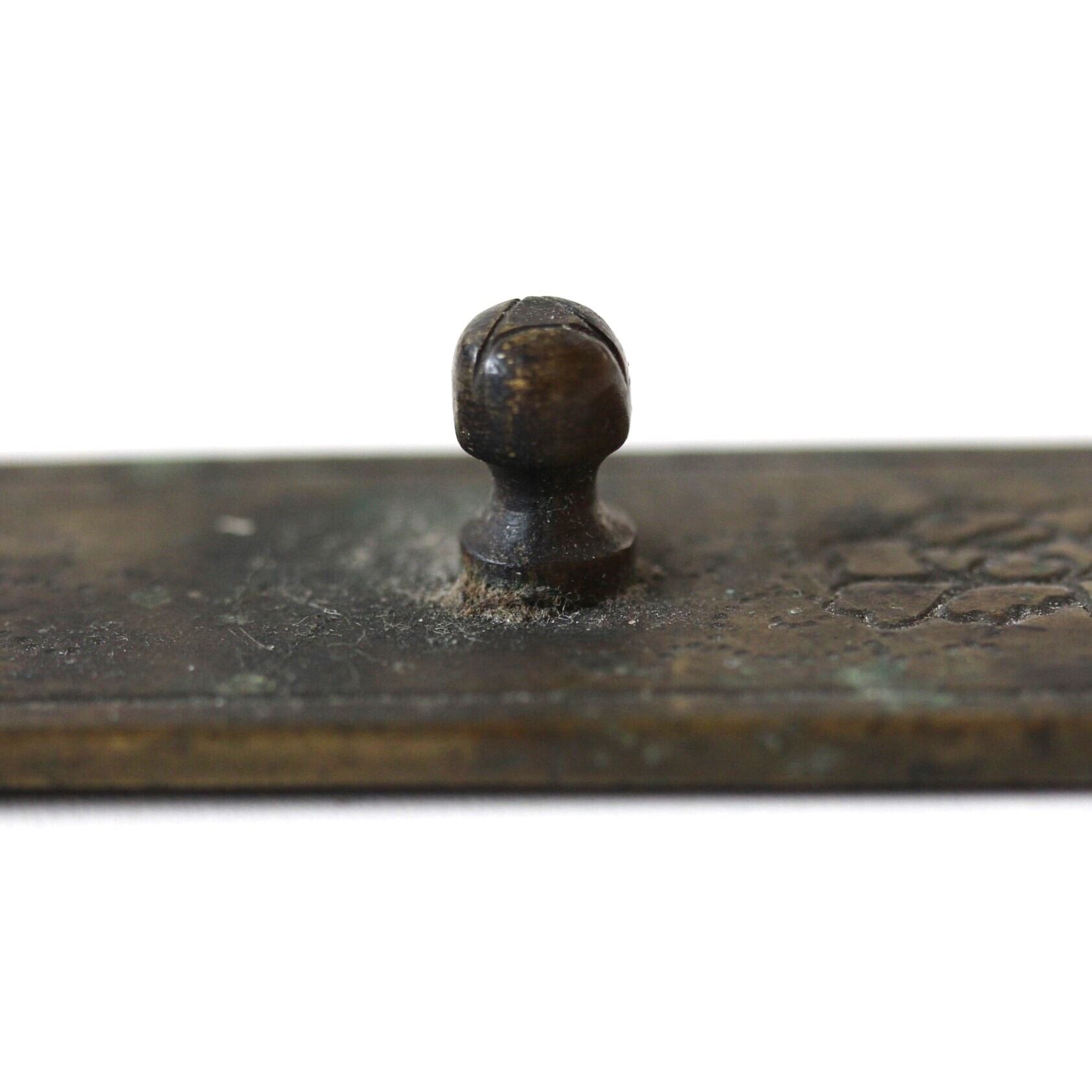 細長い板には富貴の象徴、牡丹が表された書鎮。