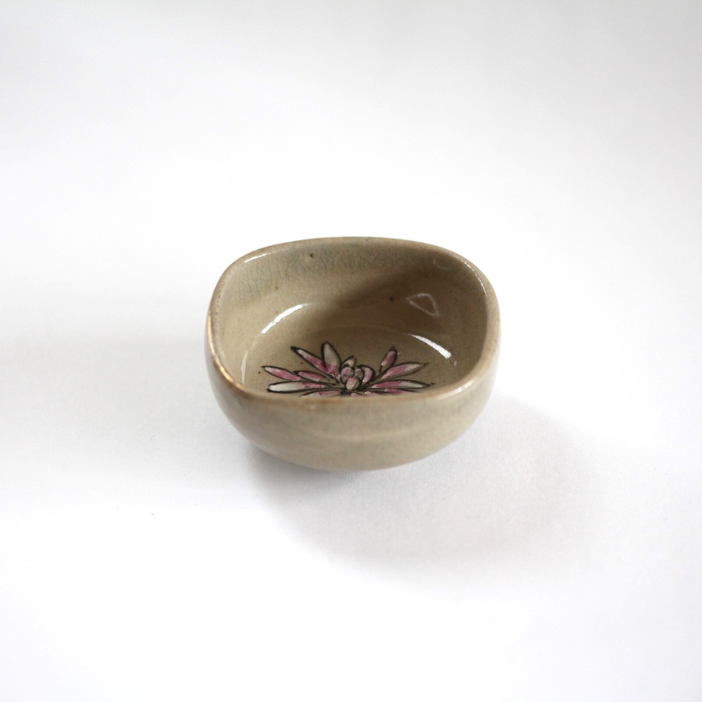 角形の盃の見込には一輪の菊。