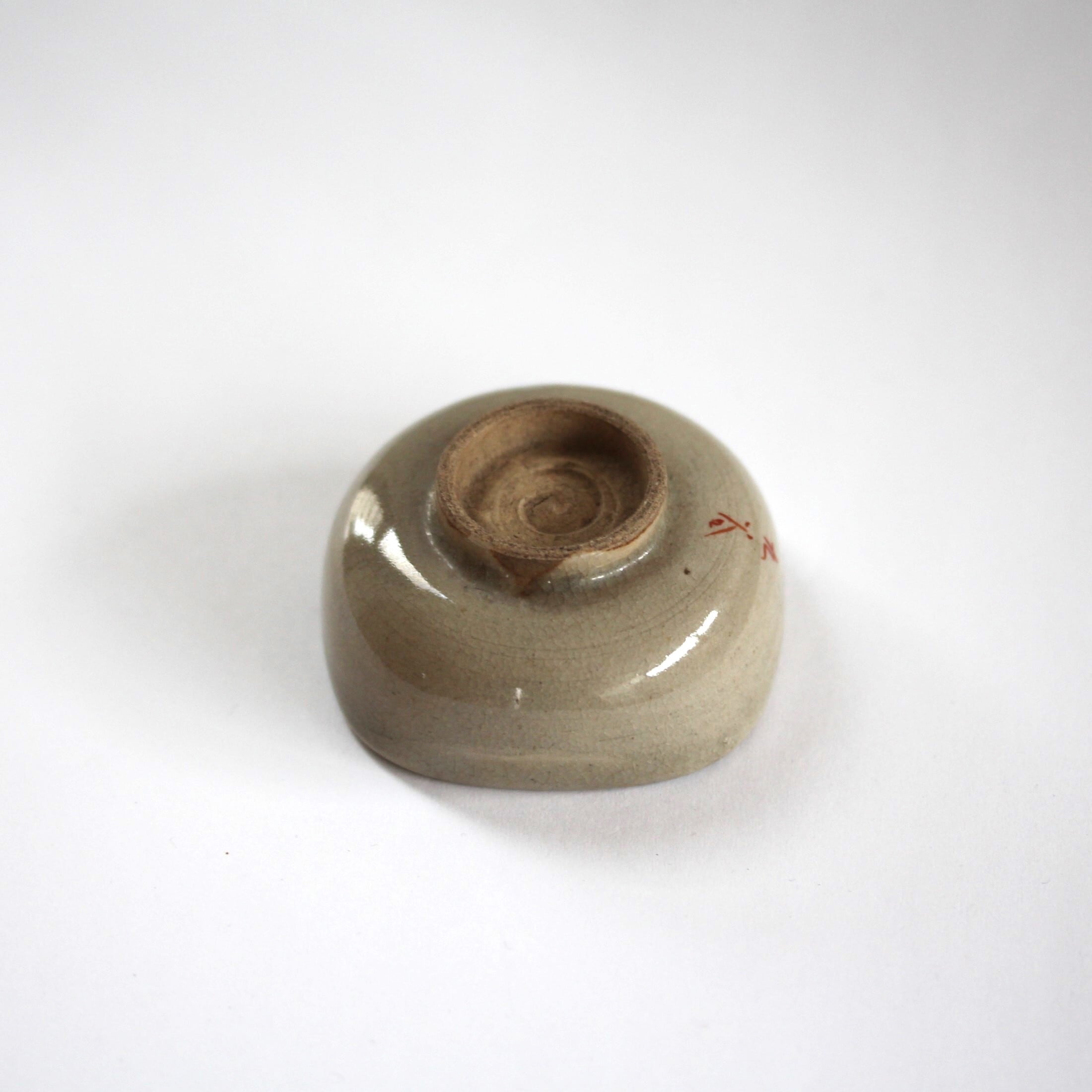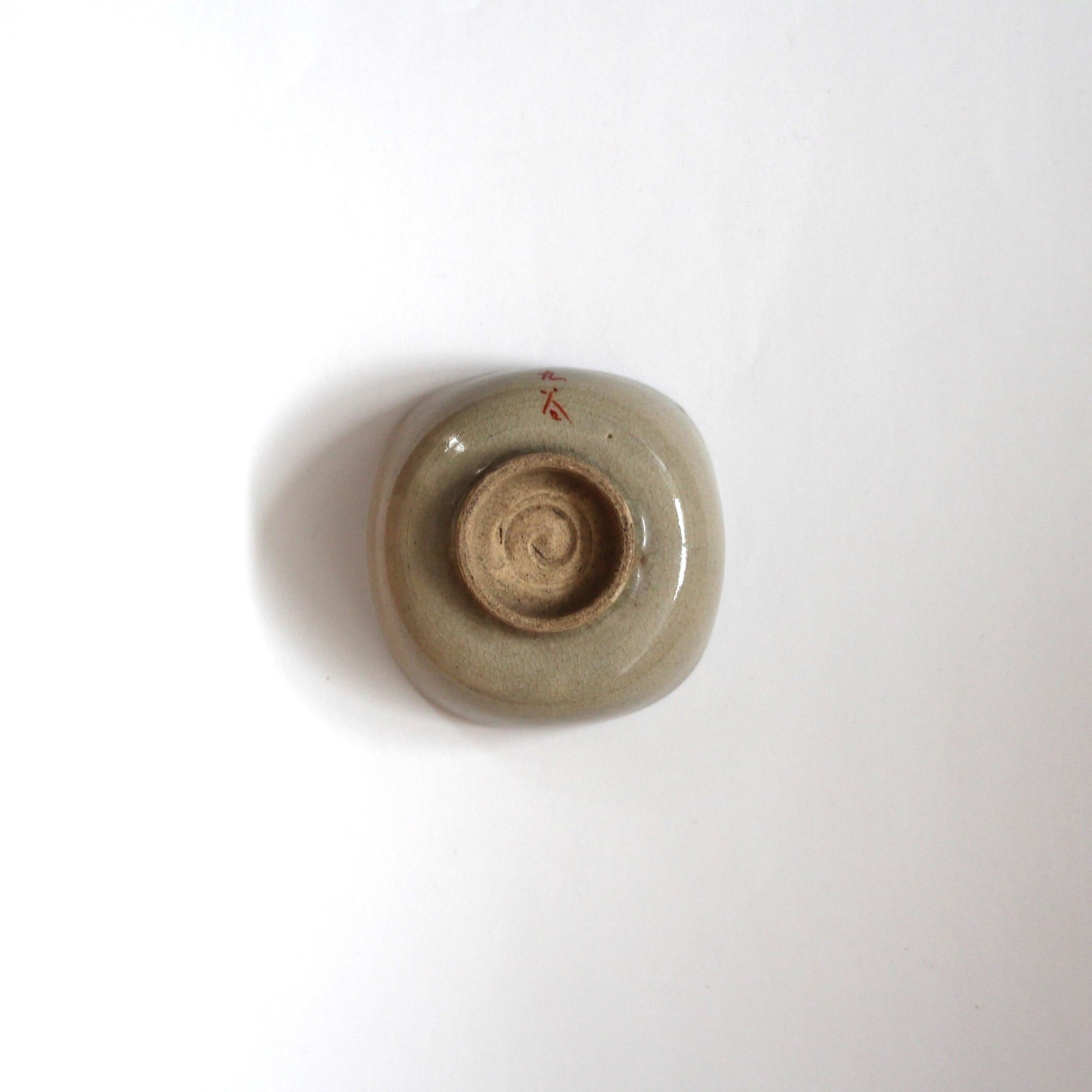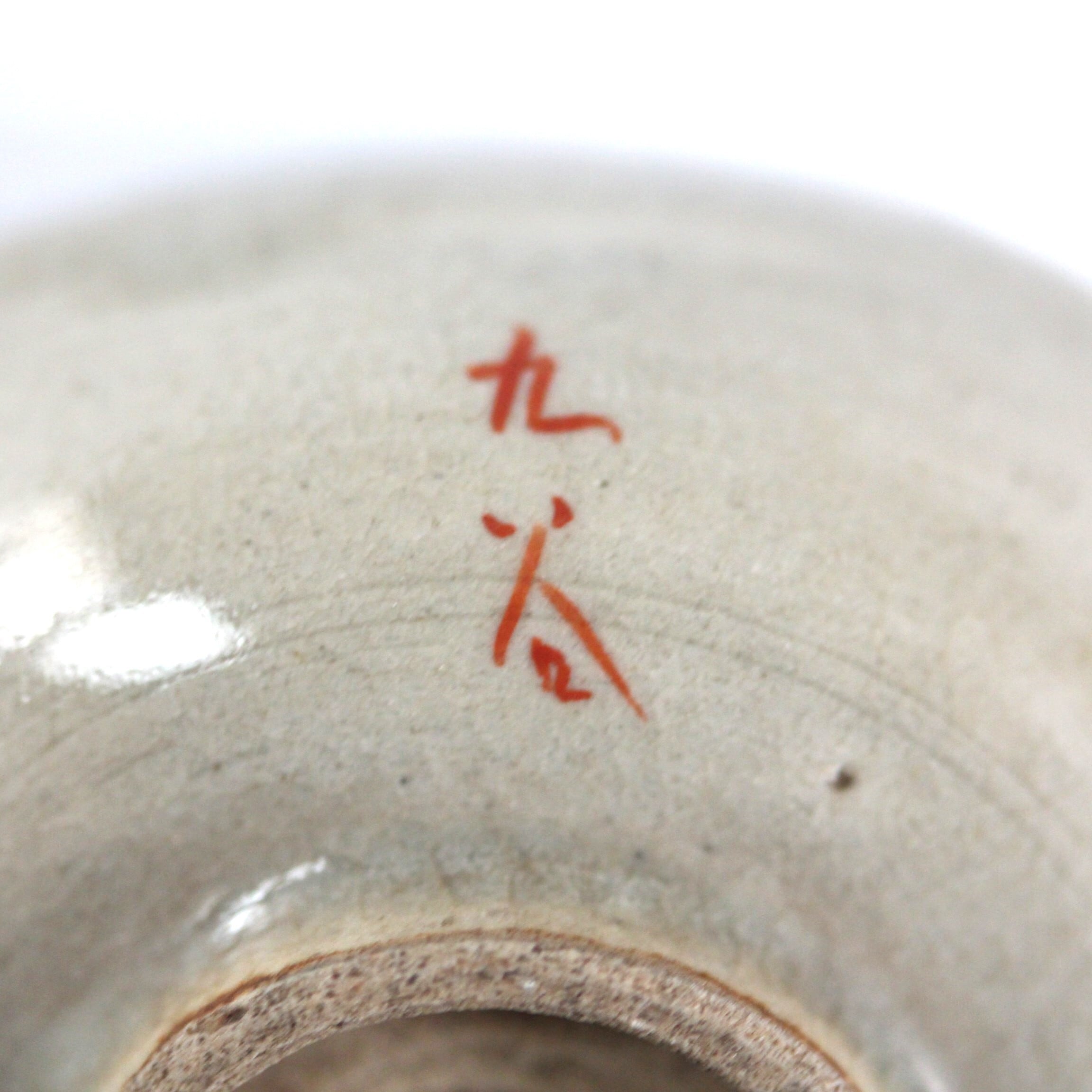 磁器というよりも陶器に近いもので、裏面に赤文字で「九谷」銘があります。
